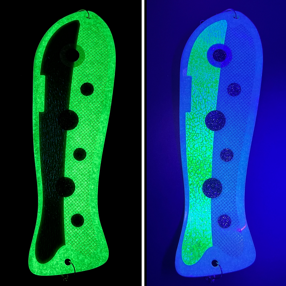Early Morning, Overcast or Murky Water Conditions: Darker and high contrast lures work best. Our top hitters in these conditions are DC Bumblebee, Hyper Carbon, Raspberry Carbon, Screwball, Willy Wonka, Kevorkian, Night Vision, Glow Worm, Black Skeleton, Incredible Hulk, Purple Reign